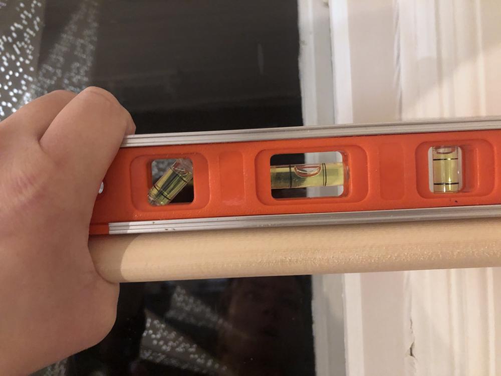 När jag ska sätta fast mitt andra fäste på motsatt sida är det viktigt att det blir rakt. Jag använder ett litet vattenpass och markerar var nästa krok ska sitta.