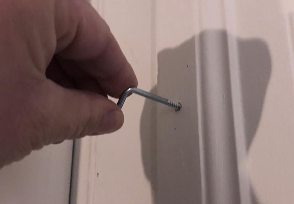 Sen skruvar jag i mina fästen , som i det här fallet är vinklade skruvkrokar (tänk på att fönstret måste gå att öppna. Sätt fästena så att dessa inte blockerar fönstret.