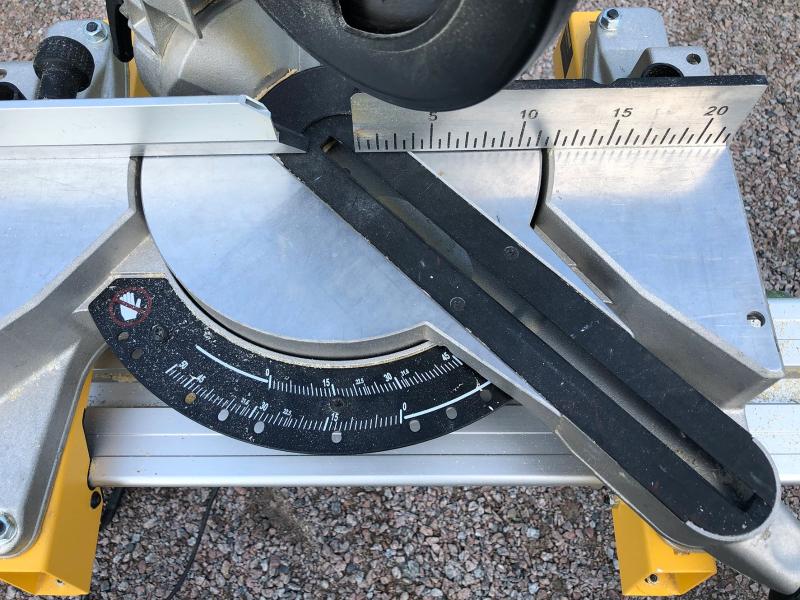 Eftersom den här listen ska sättas fast till vänster om den redan ditsatta taklisten ställer vi in gersågen med 45 grader till höger.