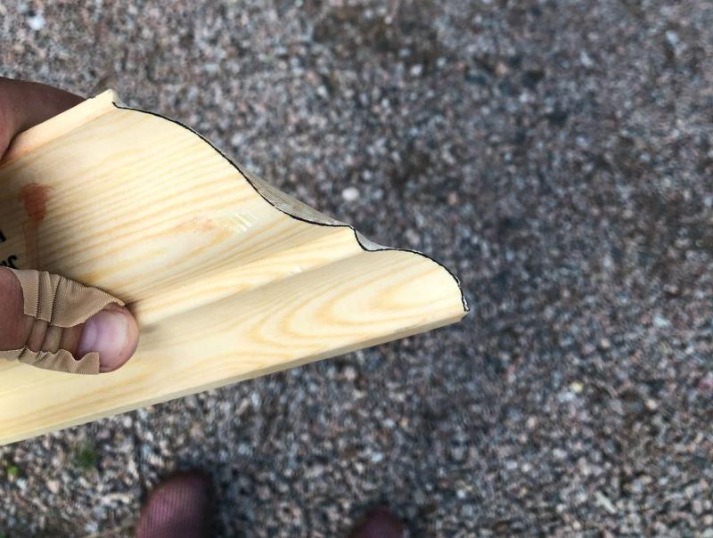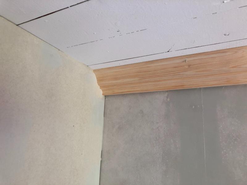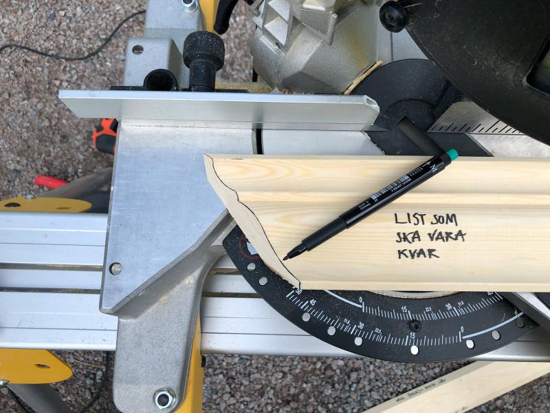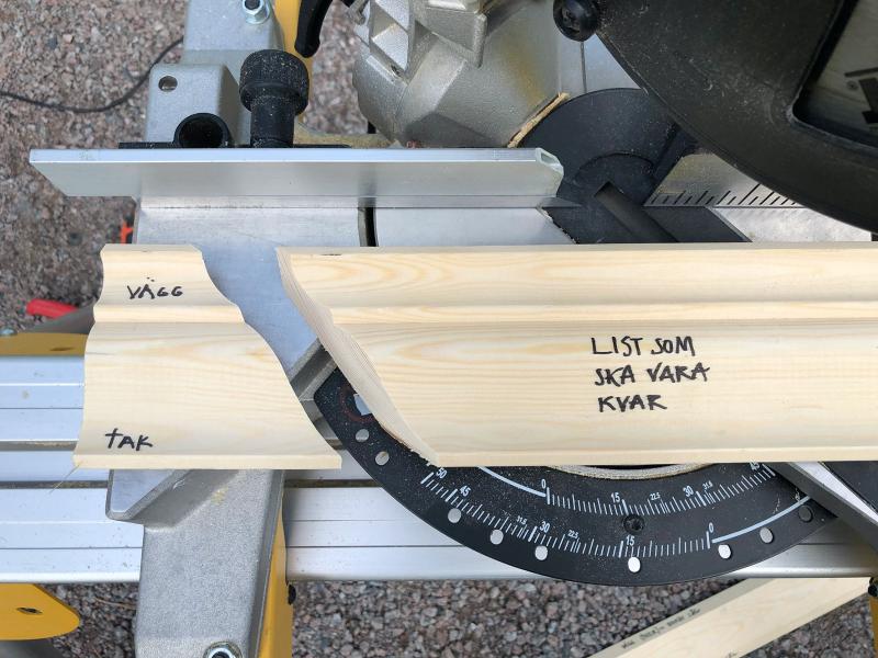 pp listen i en vinkel så du ser om någon mer ska bort. Här är det fortfarande lite som måste täljas bort. Listen som sitter på väggen ska ju få plats här bakom.