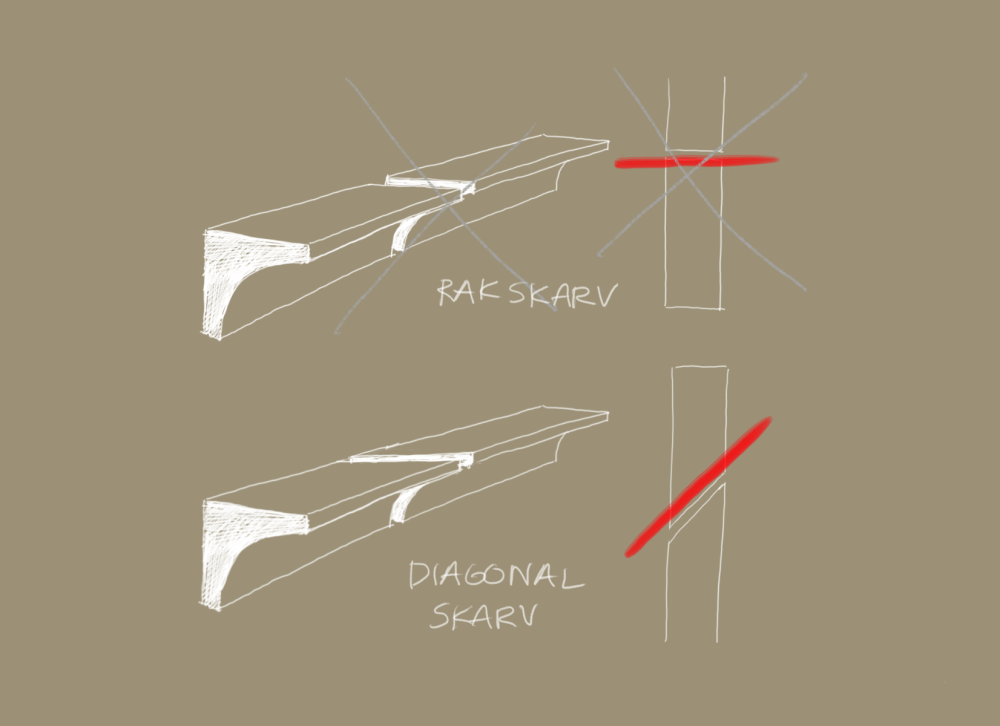 6. Vid det här laget bör dina nytillverkade lister från vår specialtillverkning vara redo att sätas upp. Lister skarvas bäst med en diagonal snittyta snarare än en rak och om skarvar ändå uppstår går det bra att fylla i springor med fönsterkitt eller latexfog, beroende på vilken typ av färg man valt att måla med.