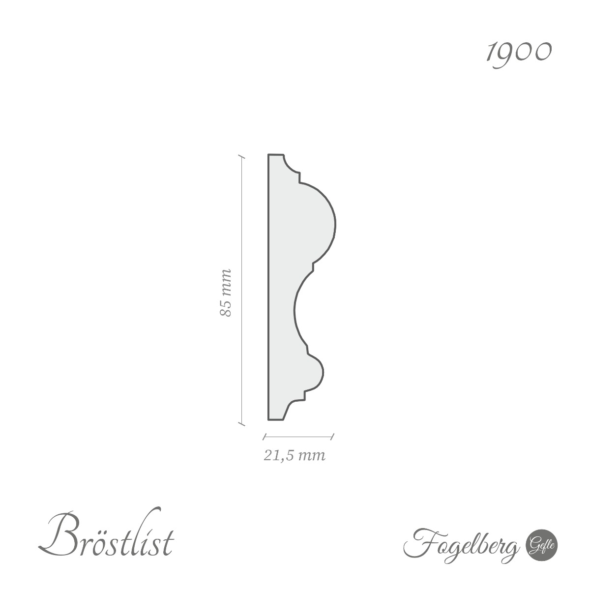 Den här profilen kommer ursprungligen från Villa Fogelberg i Gävle, byggd år 1900. Förlagan är bevarad i köket där takhöjden är 3300 mm, bröstlisten sitter på 1600 mm ovanför golvhöjd och väggytan är slätputsad.