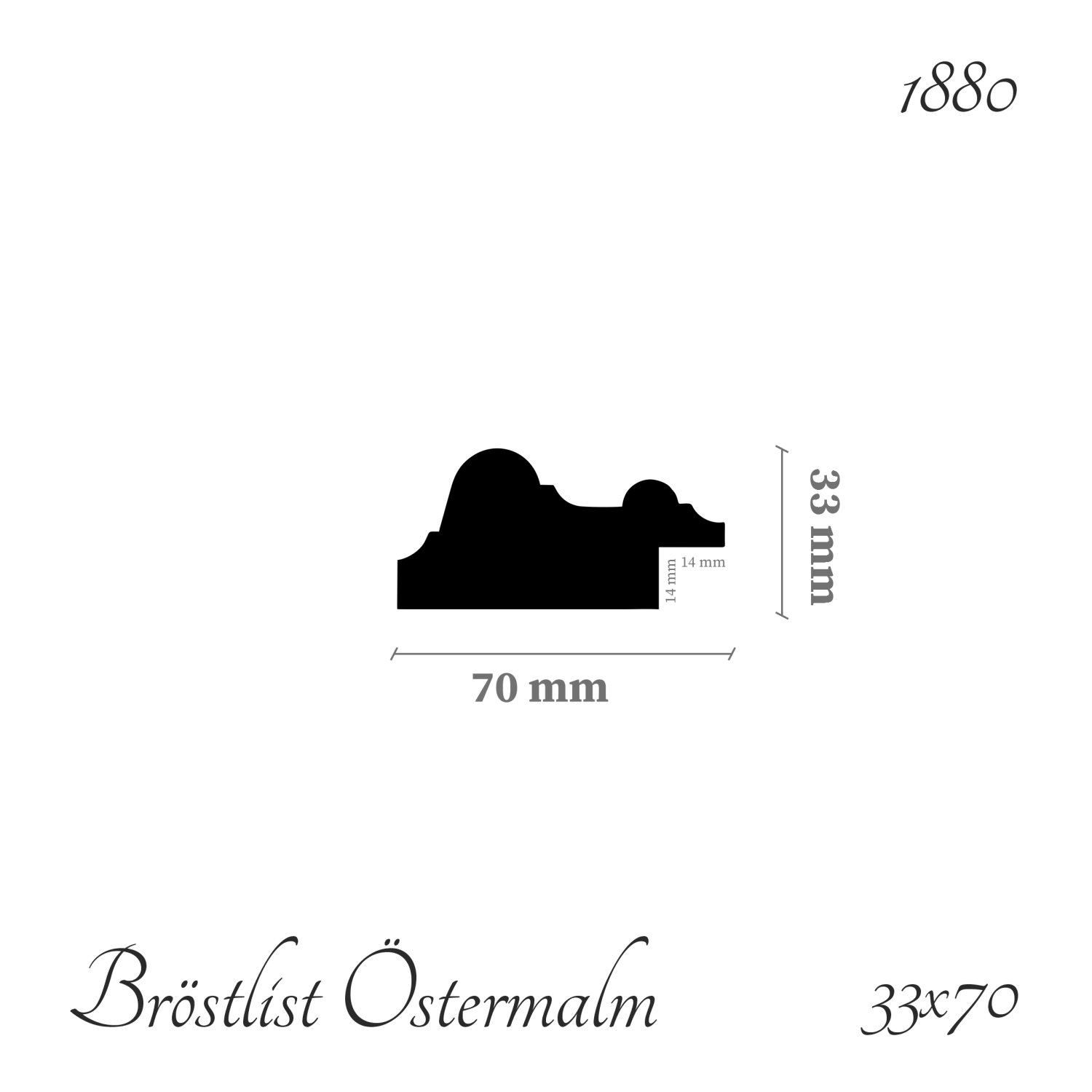 Denna bröstlist finns på den tredelade sockel som ursprungligen hittades i en lägenhet på Östermalm och är daterat till sent 1800 eller tidigt 1900-tal. Bröstlisten har urtag på baksidan (14mm) så att de lätt kan monteras ihop med den planhyvlade delen, eller mellanbrädan, som fästs mellan sockel och bröstlist och skapar det traditionella utseendet av en högre golvsockel.