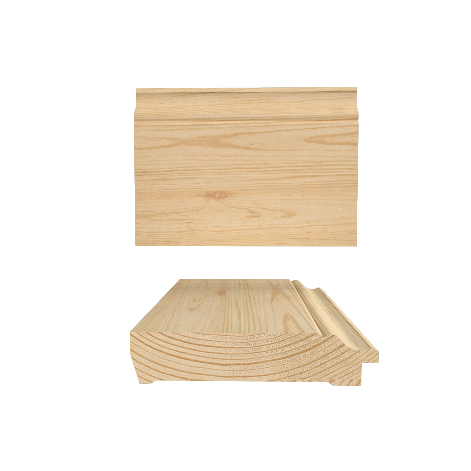 Ursprunget till denna sockel hittades i en lägenhet på Östermalm och är daterat till tidigt 1900-tal. Runt denna tid var pärlsponten populär och det kan man också se på den här höga golvlisten där pärlan kommer igen i profilen. Sockeln och lika bröstlisten har urtag på baksidan så att de lätt kan monteras ihop med den planhyvlade delen, eller mellanbrädan, som fästs mellan sockel och bröstlist och skapar det traditionella utseendet av en högre golvsockel. Den här typen av golvlister passar extra bra i salar, kök eller finare uterum.