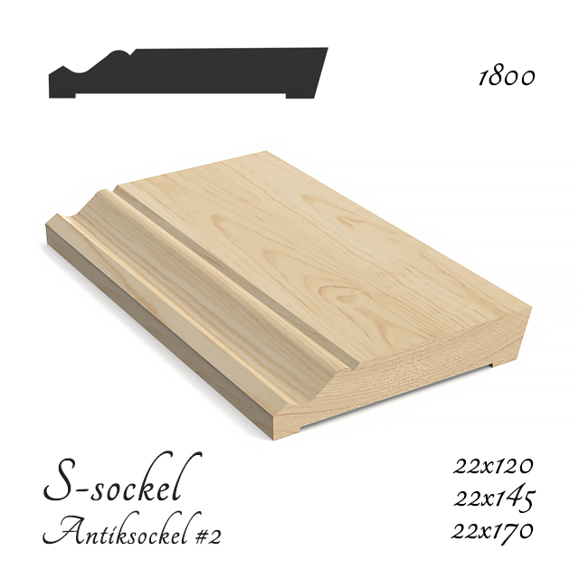Klassisk profil från mitten av 1800-talet som har hyvlats i alla tider vid hyvleriet i Veckebo. Från början användes delvis samma profilstål till Veckebofodret som till S-sockeln. S-sockeln har sedan starten tillverkats i dimensionerna 22x120, 22x145, och 22x170. Urvalet av dimensioner gör att sockeln passar alla typer av hus.