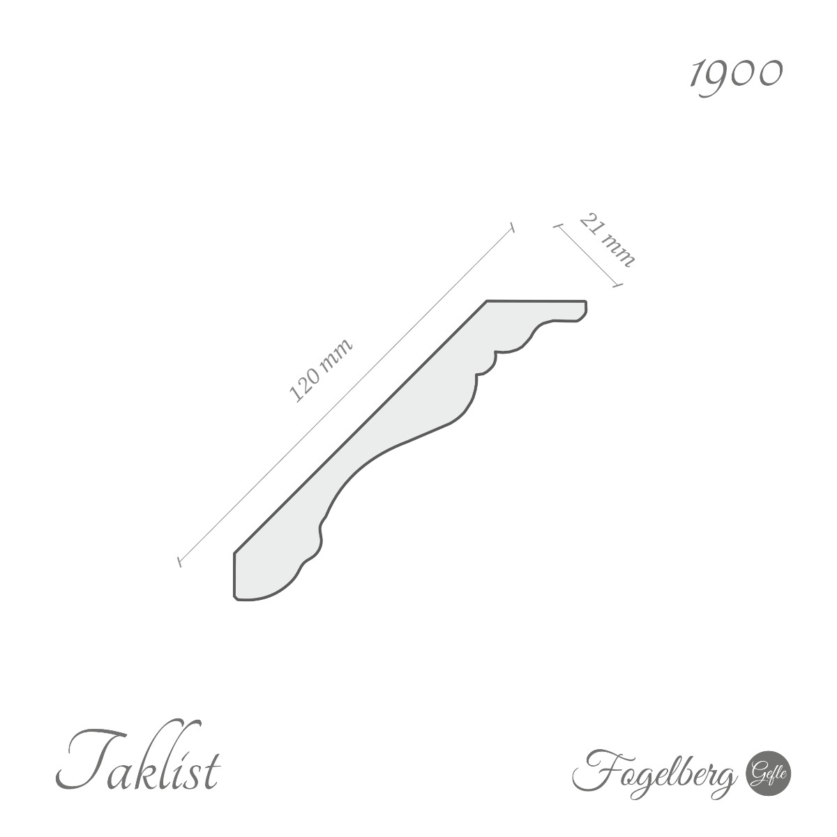 En relativt bred taklist, där profilen ursprungligen kommer från Villa Fogelberg i Gävle, byggd år 1900. Förlagan är i kalkputs och sitter tillsammans med takfrislist Fogelberg i köket och i jungfrukammaren.