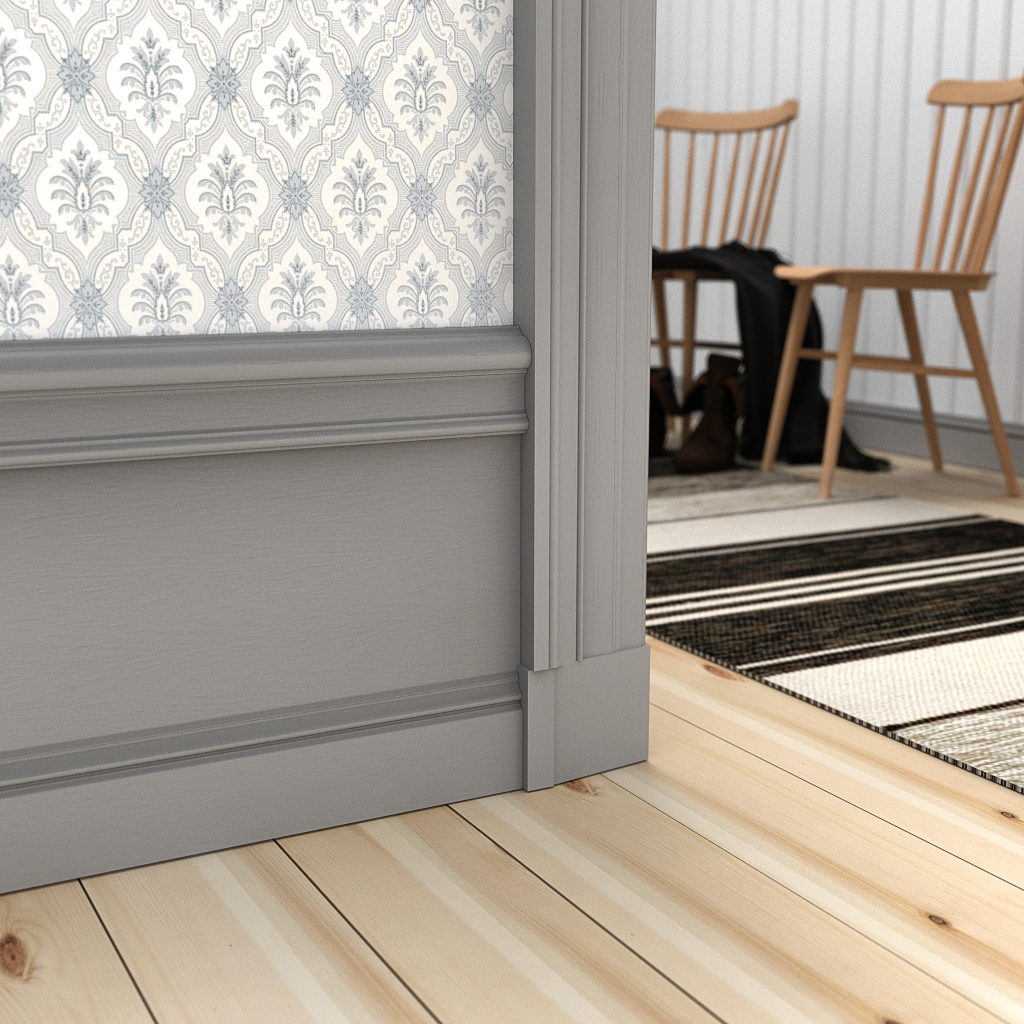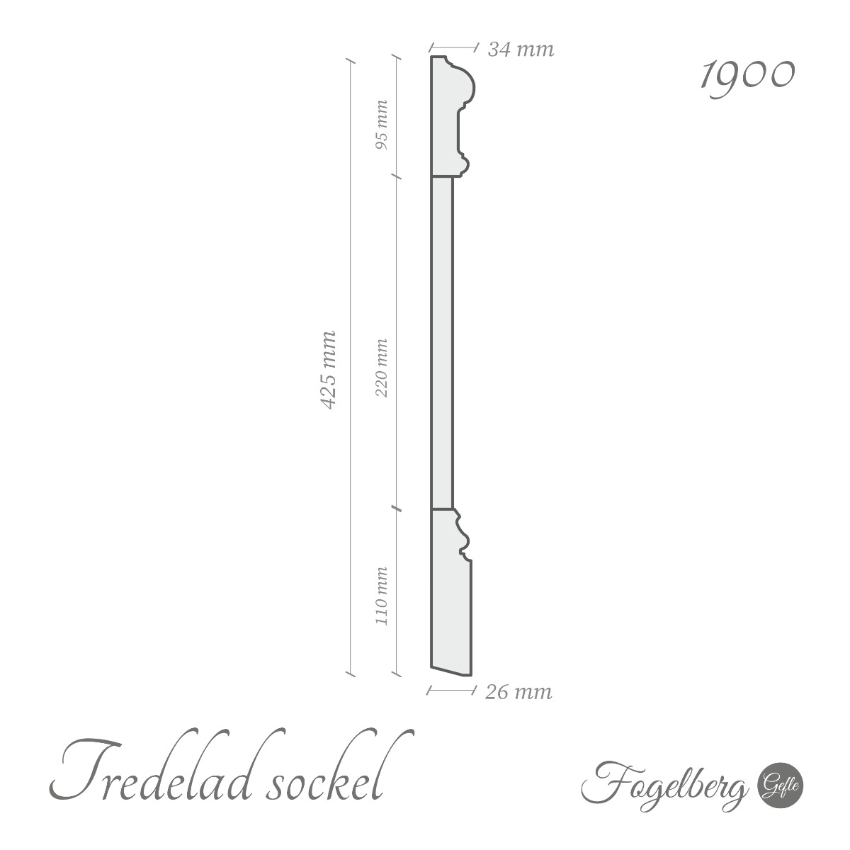 Sockelns tre delar består av Bröstlist tredelad sockel Fogelberg, Planhyvlad mellanbräda samt Golvsockel Fogelberg.