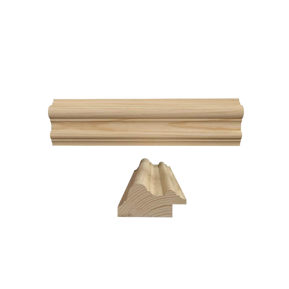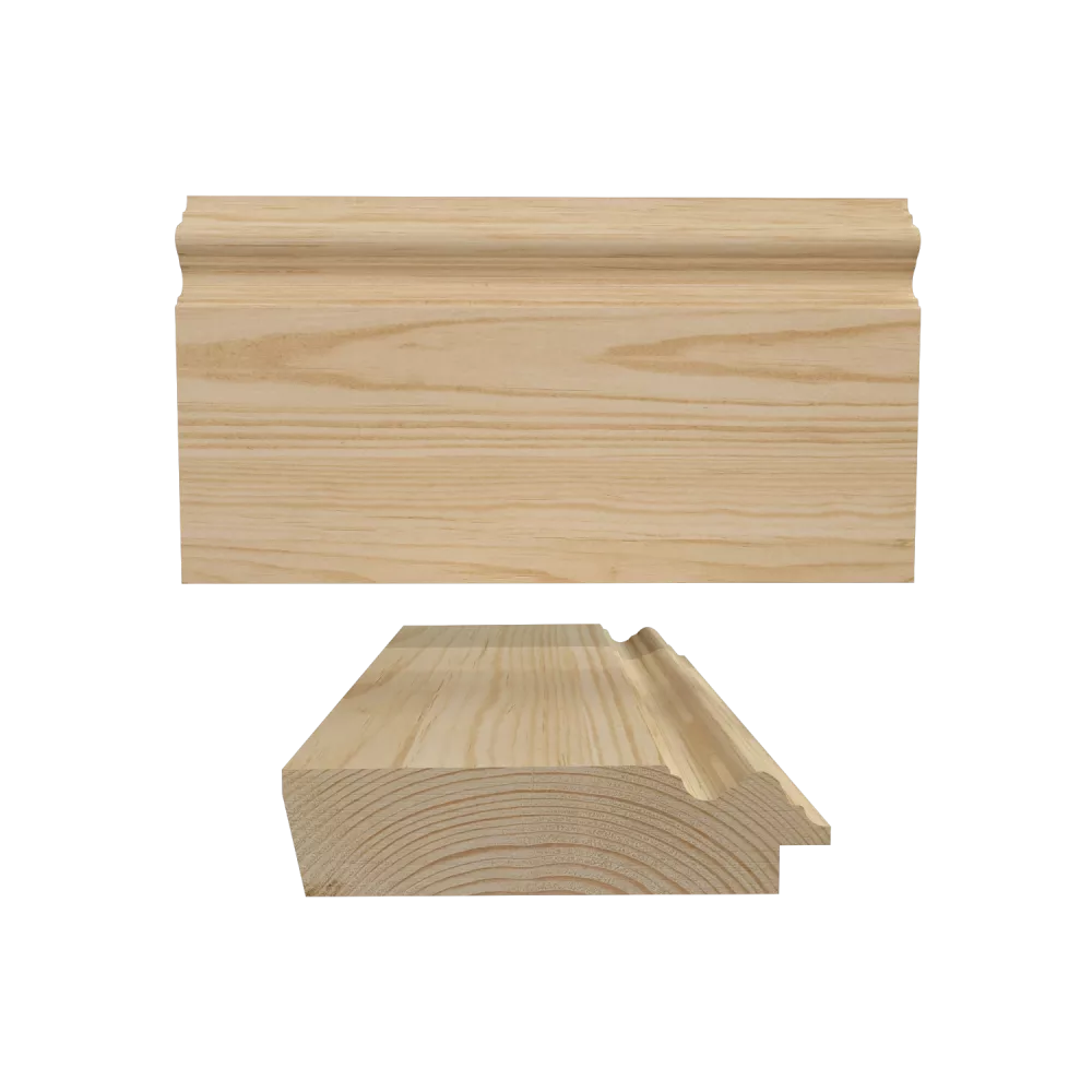 Ursprunget till denna sockel hittades i en lägenhet på Östermalm och är daterat till tidigt 1900-tal. Runt denna tid var pärlsponten populär och det kan man också se på den här höga golvlisten där pärlan kommer igen i profilen. Sockeln och bröstlisten har urtag på baksidan så att de lätt kan monteras ihop med den planhyvlade delen, eller mellanbrädan, som fästs mellan sockel och bröstlist och skapar det traditionella utseendet av en högre golvsockel. Den här typen av golvlister passar extra bra i salar, kök eller finare uterum.